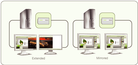 Extend your desktop across both displays allowing you to increase your productivity like never before. While reading email on one display, open attachments on the other display. Expand spreadsheets across both monitors; in graphics programs you can increase your working area by putting all your pallets on the second display.