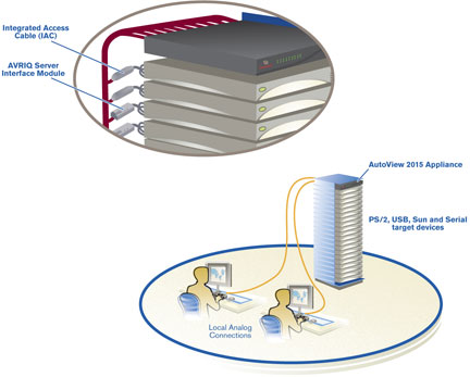 | アボセントのAutoView 3100および3200 KVMスイッチ群にも統合可能 | これによりIPネットワークを介した代替アクセスも利用可能になります。 |